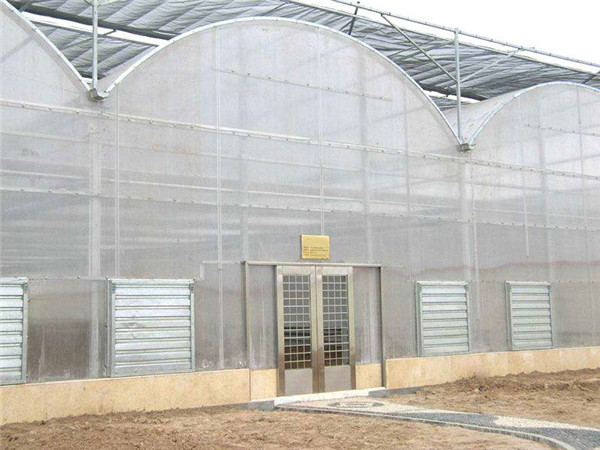 采用热镀锌钢制骨架,覆盖材料为5mm钢化玻璃,透光率在九十以上。温室大棚顶部及四周为专用铝型材。温室大棚顶部为双向开窗,齿轮齿条副传动。根据用户需要,温室大棚两个端面可安装湿帘和风机,也可在两个端面及侧面安装铝型材推拉窗、平开窗或外翻窗。